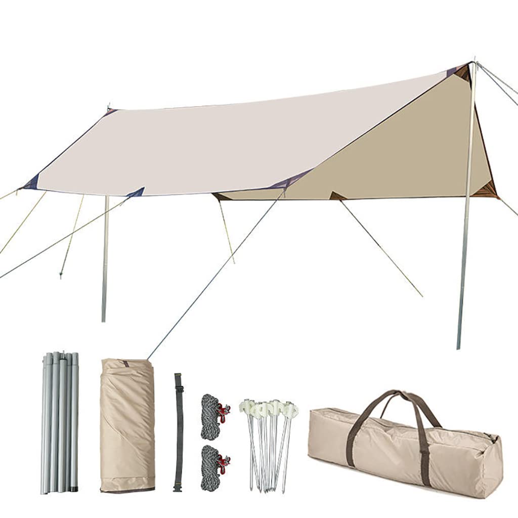 Proberos Outdoor UPF 50+ Sunshade Canopy Tarp Tent with Metal Ground Nail 10ftx10ft is designed to deliver reliable shade and protection for outdoor activities. Made from high-density 210D Oxford cloth with a UV-stabilized black coating lining, it effectively blocks sunlight, resists fading, and provides a comfortable cooling effect. The durable fabric construction ensures all-weather resilience, allowing efficient water runoff during rain without compromising portability. With evenly spaced copper eyelets and included metal accessories, setup is simple and secure. Ideal for camping, BBQs, RV trips, and picnics, Proberos offers a trustworthy outdoor shade solution that enhances comfort and usability across various environments.