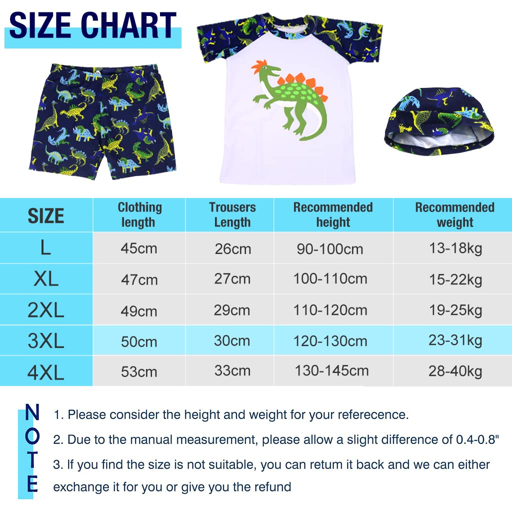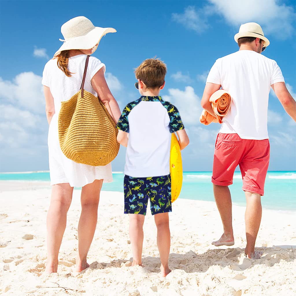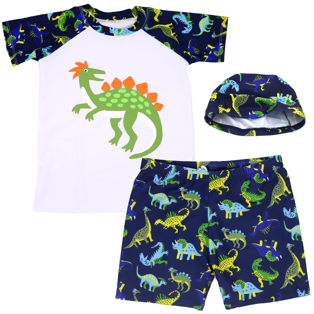 - CARTOON PRINTS DESIGNS: Super cute cartoon dinosaur prints design, kids will love this set of swimming suits. Definitely a nice swimming suit for travel, swimming, etc.