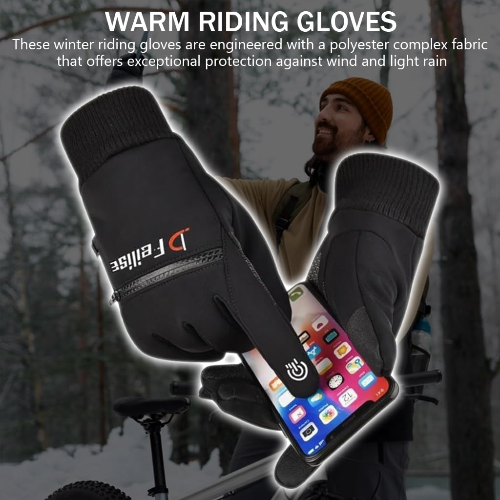 - FASHION THERMAL WINTER RIDING GLOVES: These winter riding gloves are engineered with a polyester complex fabric that offers exceptional protection against wind and light rain. The windproof and splashproof design keeps your hands warm and dry no matter the wind chill, ensuring your hands stay warm and comfortable. Featuring a unique and convenient buckle design, these gloves can be attached together for easy storage or transport.