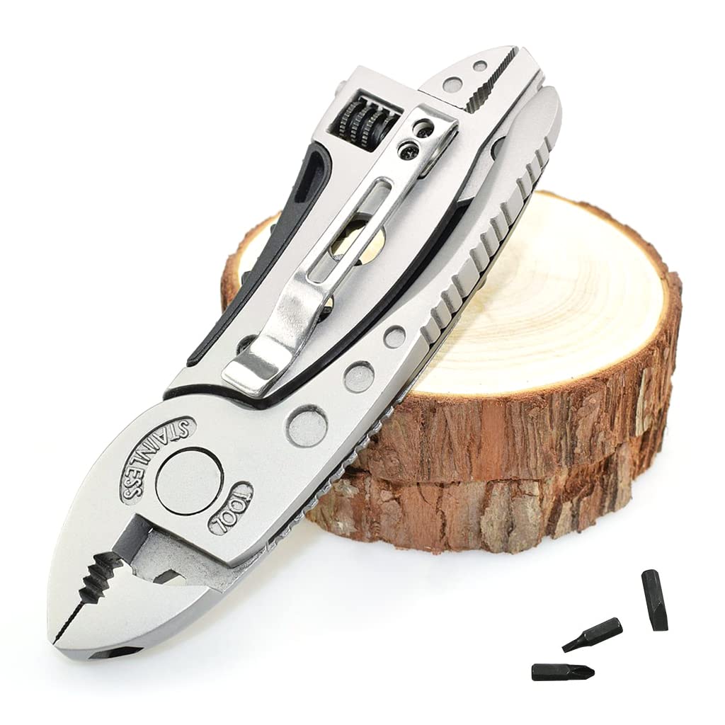 - Combines a wrench, pliers, and screwdriver in one compact, foldable multitool for versatile functionality.
