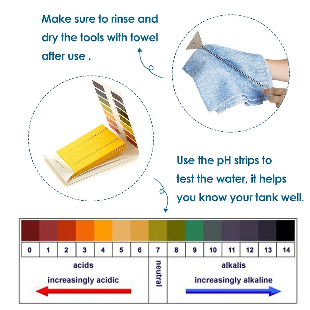 - SERVICE WARRANTY: Your satisfaction is our lifetime goal. We are committed to providing you with the most satisfactory products. The package includes 5 aquascape tools with 100 strips PH Tester. If you discover some parts missing when you receive it, contact us, we promise to resend it.
