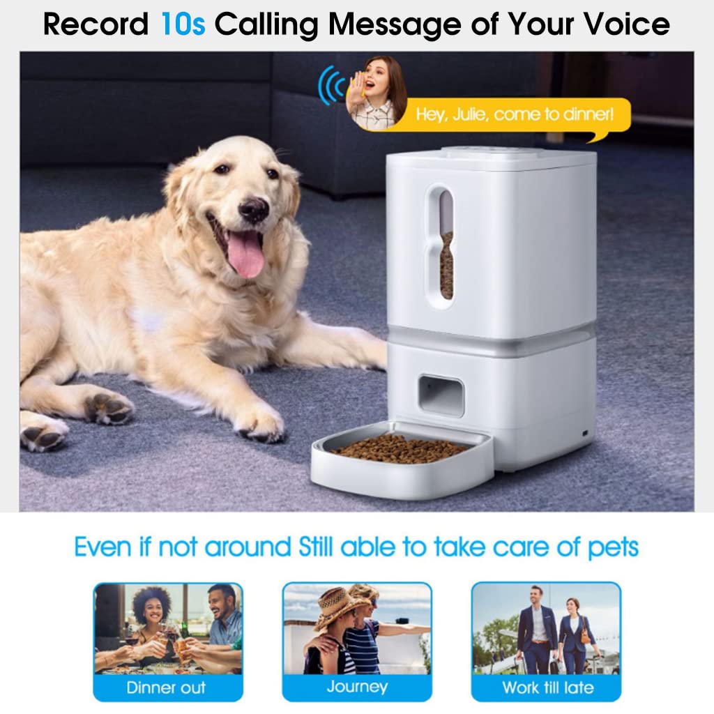 - CARING MESSAGE LEAVING FUNCTION: Equipped with 10s voice recording function. You can record you voice in the feeder. When you leave home, you can use the voice recorder to attract and remind your pet to eat. Listening familiar owner's voice can relieve some depression feeling of your pet when you leave. (For example, come, Fido! time for meal). And the voice message will auto play before every feeding time.