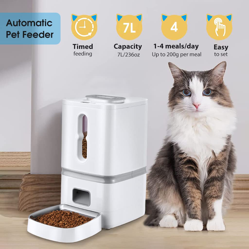 - Qpets 7L Automatic Dog Cat Feeder Pet Feeder with Bowl Programmable Time and Quantition, Cat Food Dispenser with 4 Meals Auto Feeding, Voicemail Recording Qpets 7L Automatic Dog Cat Feeder Pet Feeder with Bowl Programmable Time and Quantition, Cat Food Dispenser with 4 Meals Auto Feeding, Voicemail Recording