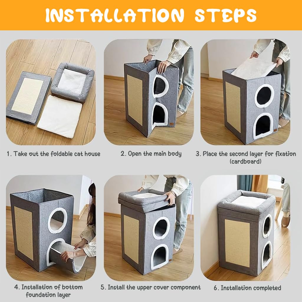 - EASY ASSEMBLY: This cat house is simple to assemble, requiring minimal time and effort. All necessary tools and instructions are included, allowing you to quickly create a delightful living space for your cat to explore, play, and rest, enhancing the bond between you and your pet.