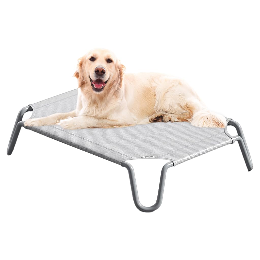 Qpets Fold Dog Bed, Large Elevated Pet Bed Mesh Alloy Steel Dog Cot Bed provides a sturdy and breathable resting space for medium and large dogs or cats. Built with a robust steel frame capable of supporting up to 110 pounds, it offers reliable stability and strength. Its elevated design lifts pets about 7.8 inches off the ground, promoting airflow and keeping them cool and dry. The high-density mesh fabric is durable, wear-resistant, and maintains its shape over time. With a quick 5‑second assembly and lightweight structure, this foldable bed is ideal for both indoor use and outdoor activities, ensuring lasting comfort and reflecting Qpets’ commitment to quality and practicality.