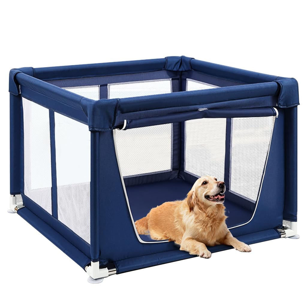 - Qpets Playpen for Dogs with Zip Around Gate and Clear Mesh | 107x107x66cm Indoor Pet House Qpets Playpen for Dogs with Zip Around Gate and Clear Mesh | 107x107x66cm Indoor Pet House