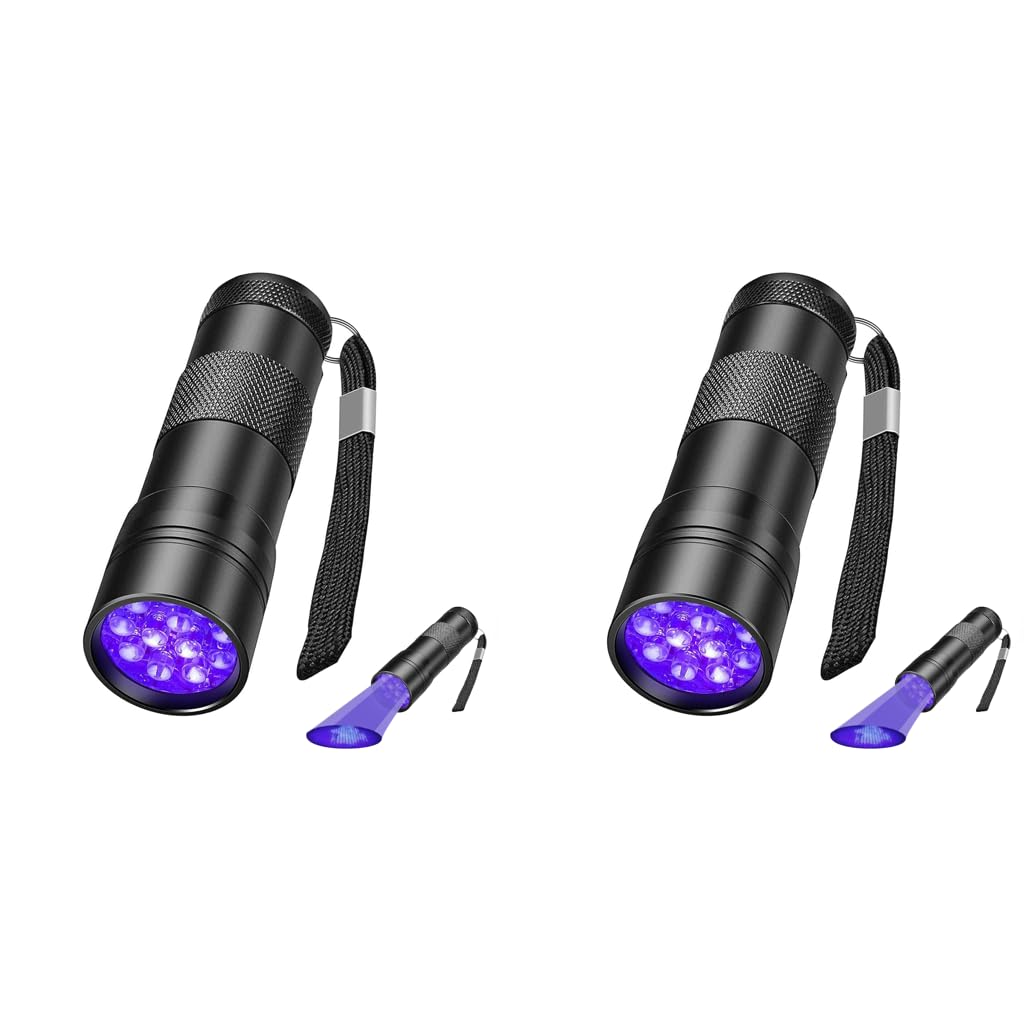 Optifit UV Flashlight for Inspection with 12 LED 395nm Light & IPX4 Aluminum Body | 2 PCS