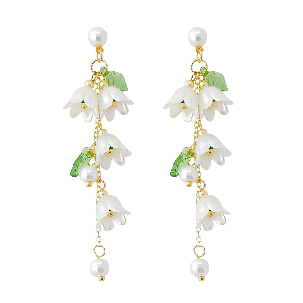 SANNIDHI Earrings for Women featuring White Lily of the Valley Floral Dangle Design | Hypoallergenic Jewelry Gift