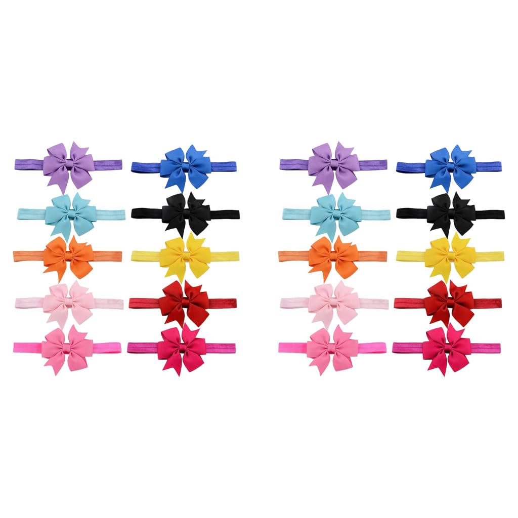 SANNIDHI Baby Hair Band Set for Girls with Satin Bowknot Elastic Design 20PCS Multicolor | Soft Secure Hold