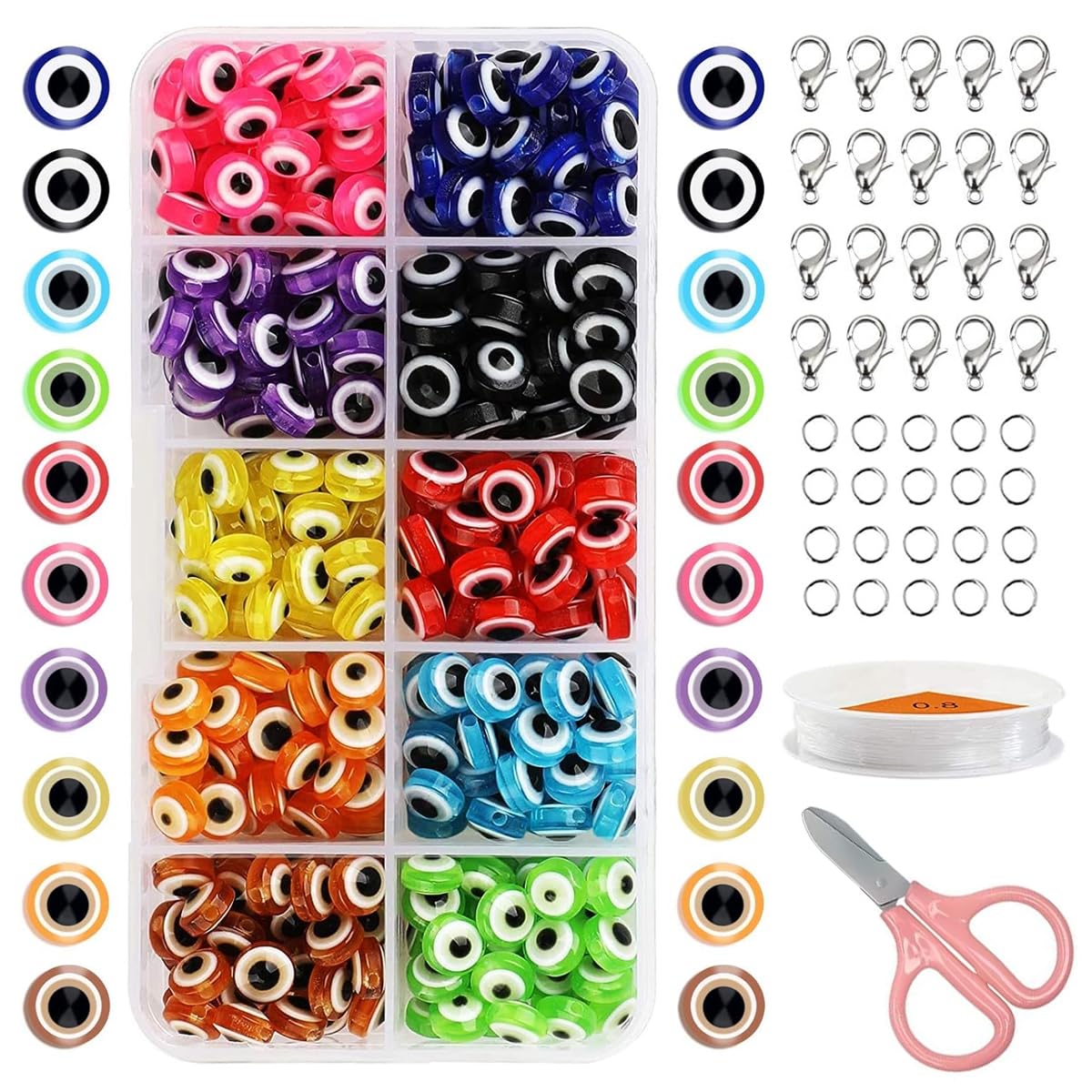 - SANNIDHI Evil Eye Beads Kit for DIY Jewelry Making with 200 pcs 8 mm Resin Beads | 10 Colors and Elastic Strings Set SANNIDHI Evil Eye Beads Kit for DIY Jewelry Making with 200 pcs 8 mm Resin Beads | 10 Colors and Elastic Strings Set