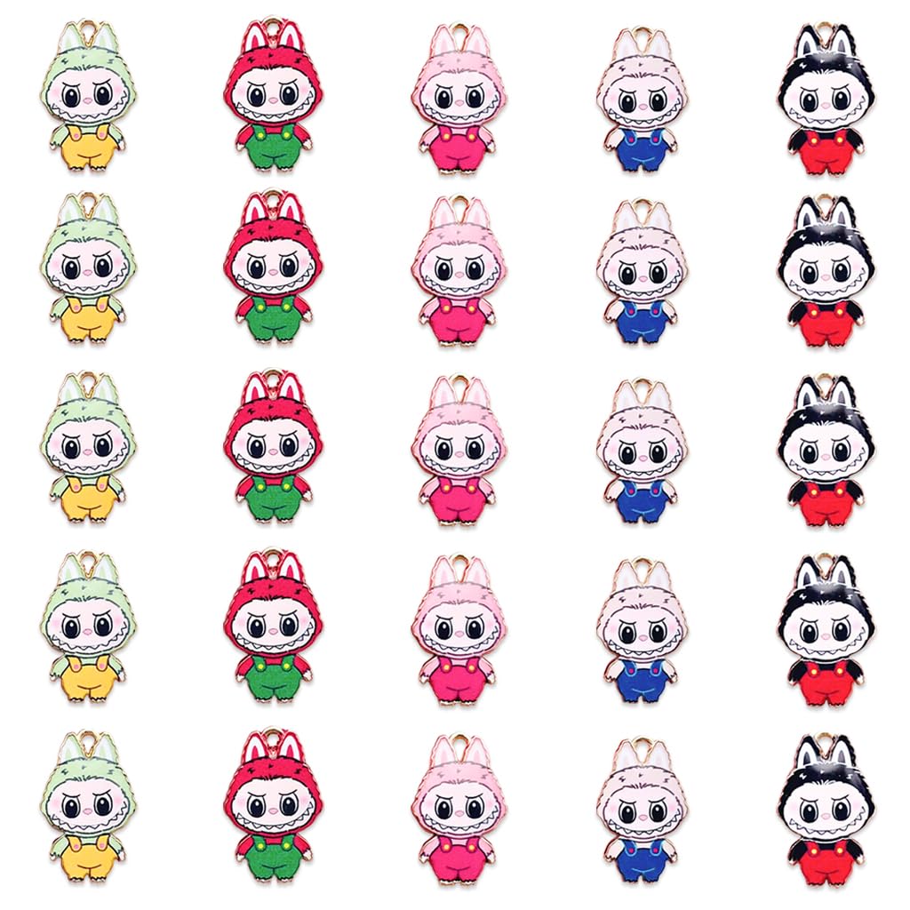 SANNIDHI Enamel Charms for Jewelry Making with 25 mini 0.98 in pieces and pre attached eyelets | colorful alloy cartoon designs for bracelets necklaces and keychains
