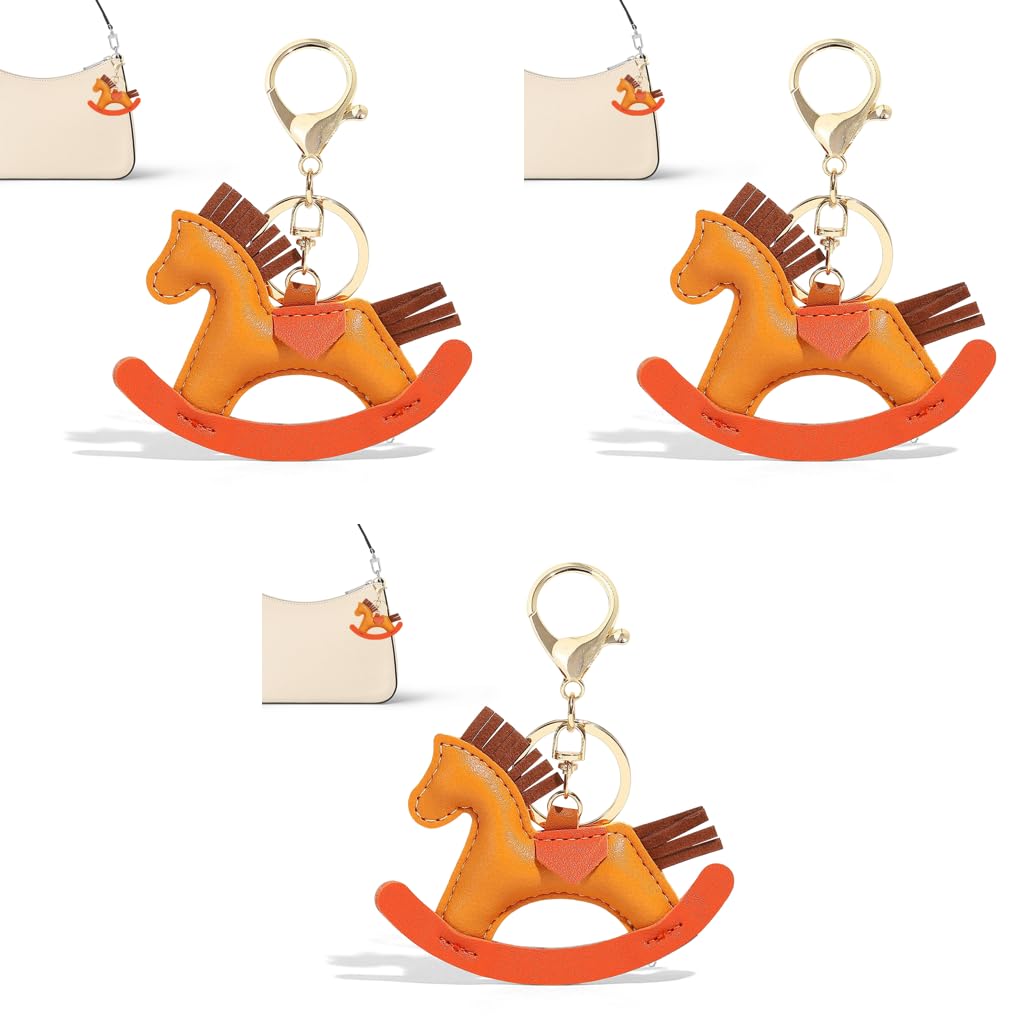 SANNIDHI Bag Charm for Handbags with Metal Keyring and PU Brown Horse Pendant 3 PCS | Gift for Women