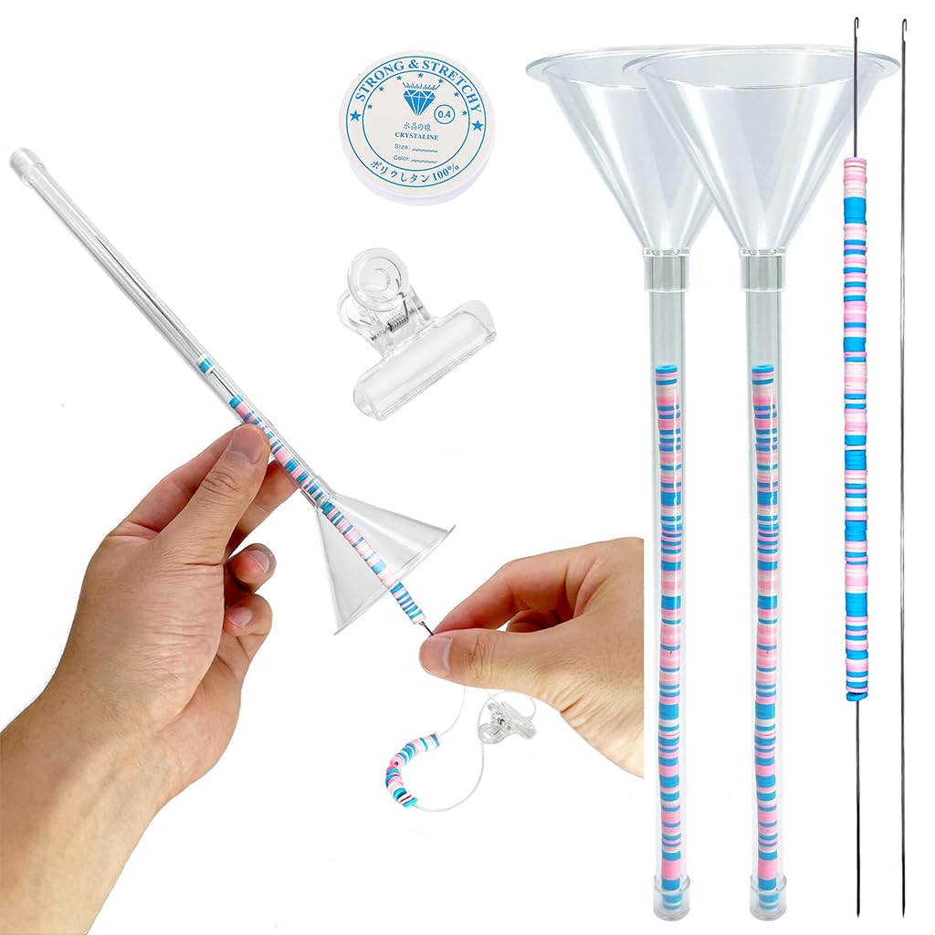 - VERSATILE DIY BEADING CRAFTS KIT: This beading tools kit is perfect for a wide range of DIY beading projects. Whether you're making bracelets, necklaces, or intricate jewelry, this kit has you covered. It includes 2 beading funnels, 2 straight sticks, 2 clips, and a roll of 0.4mm crystal line, all designed to streamline your beading process.