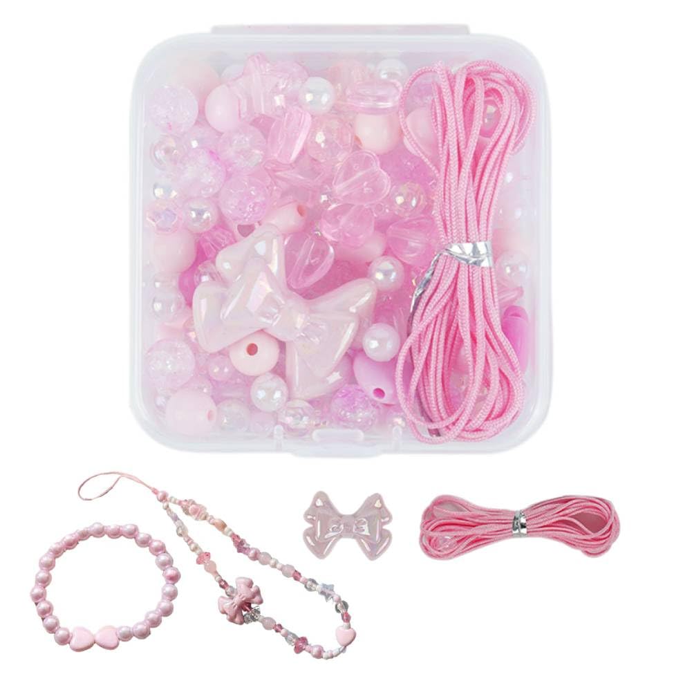 - Includes glossy pink bow beads and assorted charms for creating personalized accessories.