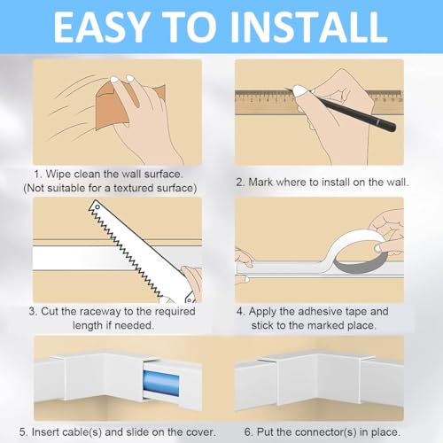 - SET OF 6 CONNECTABLE CABLE HIDER: The cable hider set includes 6 pieces, each measuring 15.7x0.59x0.4 inches . Designed for seamless integration, these cable hider can be easily connected to cover a longer distance. This feature ensures a tidy, continuous line of concealed cables, ideal for extensive cable management in larger spaces.