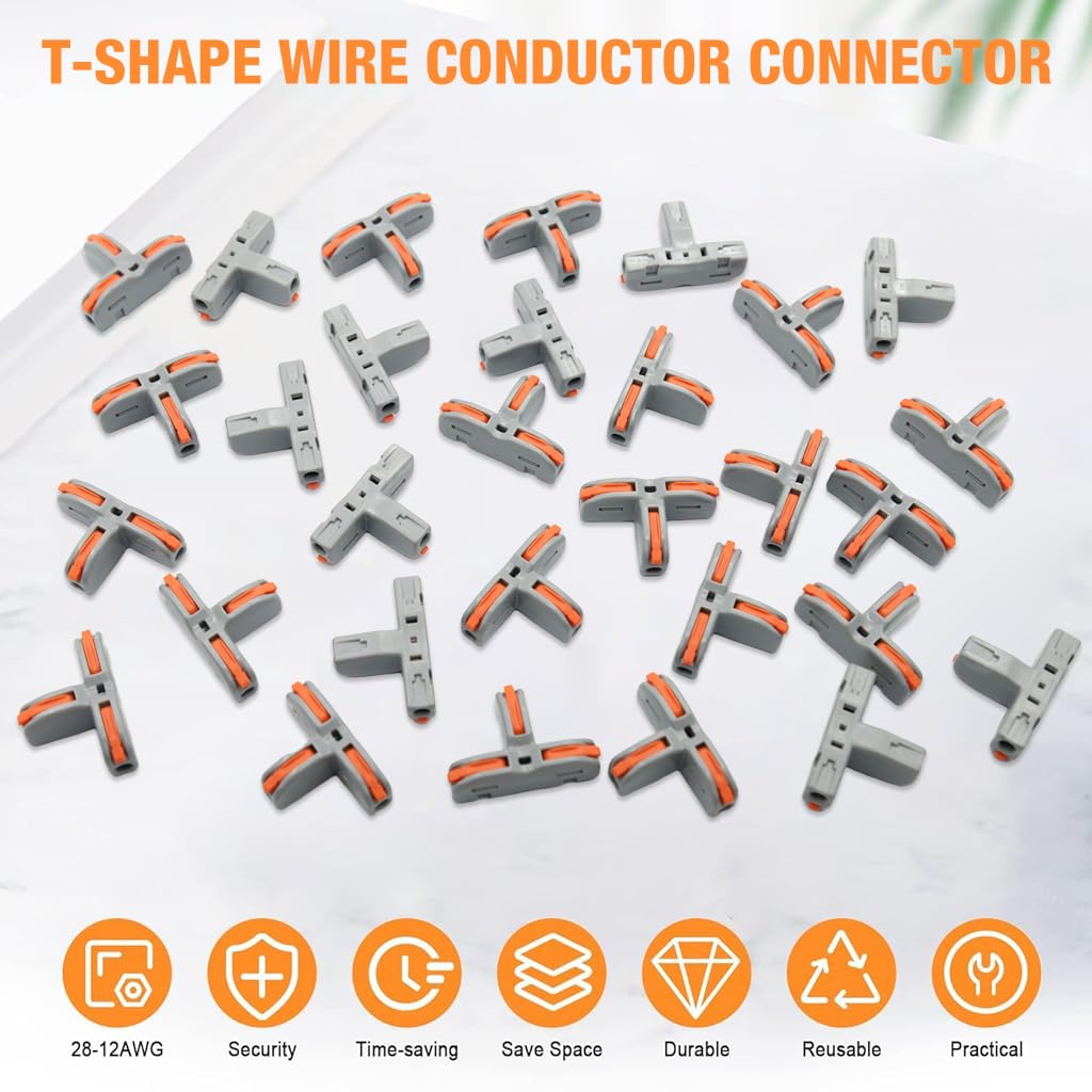 - Serplex 30Pcs Wire Connectors T-Shape 3 Way Wire Conductor Quick Cable Splitter Electrical Connectors Push-in Terminal Block Wire Connectors Universal Wire Connector for AWG 28-12 Cable Serplex 30Pcs Wire Connectors T-Shape 3 Way Wire Conductor Quick Cable Splitter Electrical Connectors Push-in Terminal Block Wire Connectors Universal Wire Connector for AWG 28-12 Cable