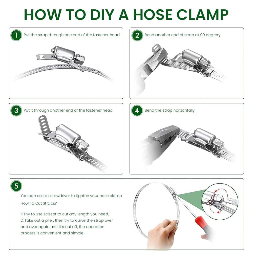 - USER-FRIENDLY INSTALLATION: Designed for straightforward use, our hose clamp simplifies your tasks. Just cut to the desired length, wrap it around the hose, and fasten using the bolt. This easy-to-follow process eliminates the need for special tools, saving you time and energy. Enhance your DIY or professional projects with this hassle-free solution that promises efficiency at every step.