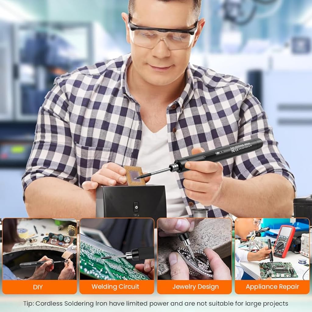- CORDLESS USB POWER: Experience the freedom of soldering without cords. This cordless, portable soldering iron pen is powered by rechargeable batteries, providing a long-lasting performance once fully charged. Perfect for use both indoors and outdoors, its tangle-free design minimizes trip hazards. Embrace a flexible and efficient soldering experience. Give it a try today!