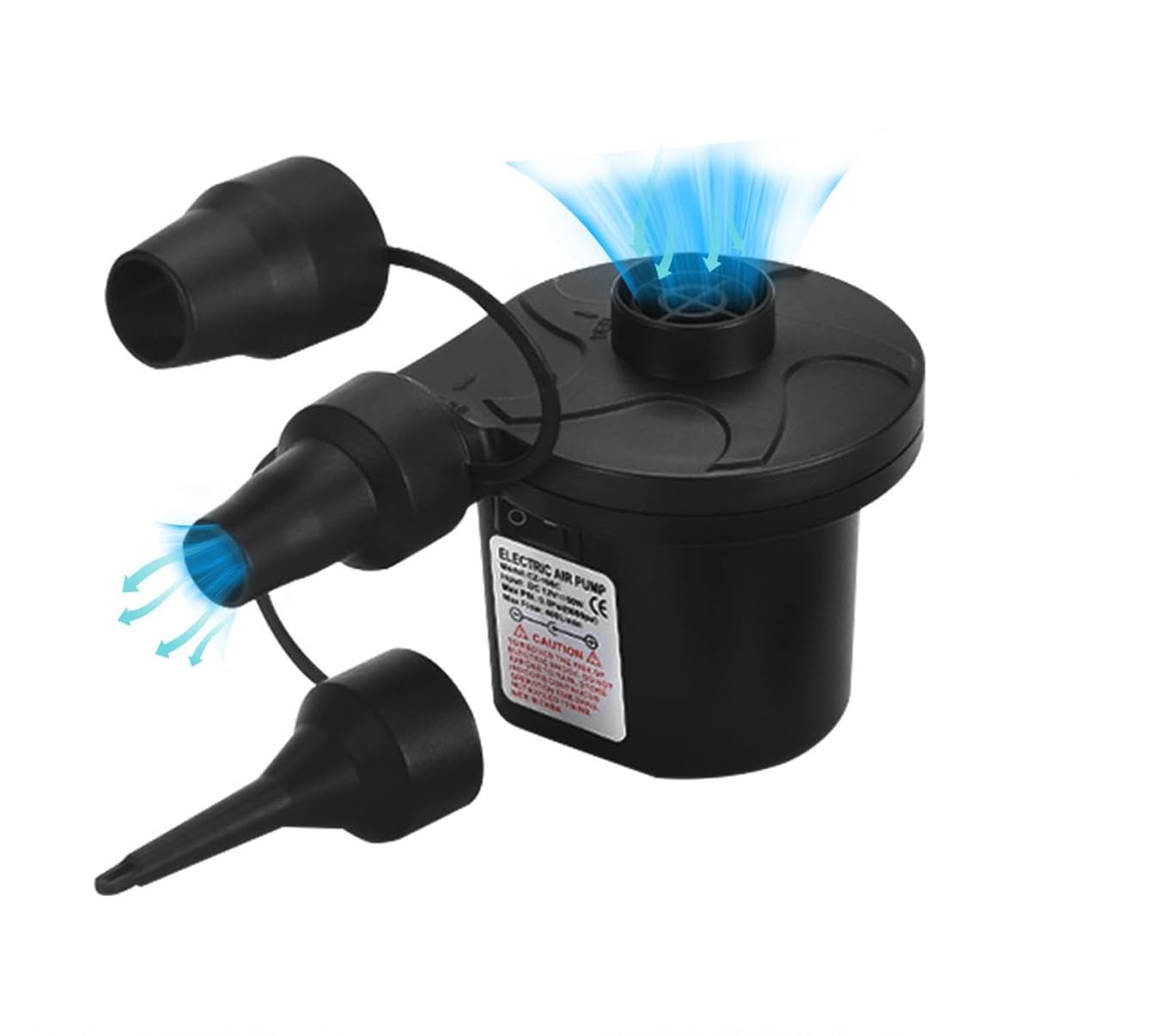 - Includes three nozzles of different diameters for compatibility with a wide range of inflatable products.