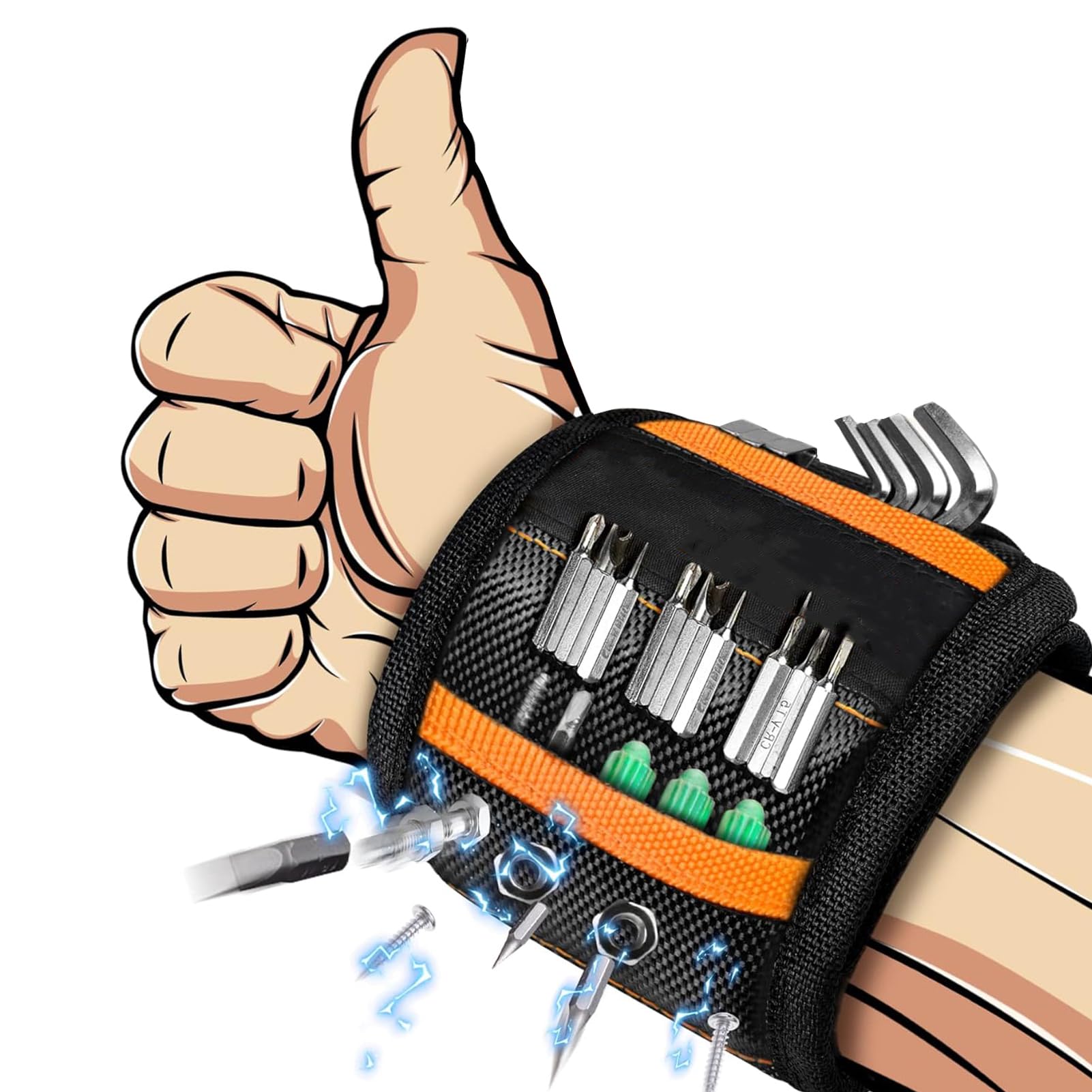 Serplex Magnetic Wristband 15 Super Strong Magnets Gadgets Wrist Tool Belt Holder is designed to enhance work efficiency by securely holding screws, nails, and drill bits within easy reach. Featuring 15 embedded magnets across a large surface and two small pockets for non-metallic parts, this adjustable wristband provides both strength and convenience. Made from durable 1680D ballistic polyester with a soft padded mesh lining, it ensures comfort and breathability during extended use. Its versatile design supports electricians, woodworkers, and DIY enthusiasts by minimizing downtime and improving workflow. Combining durability and practical functionality, Serplex demonstrates reliability for anyone seeking a time-saving, hands-free tool solution.