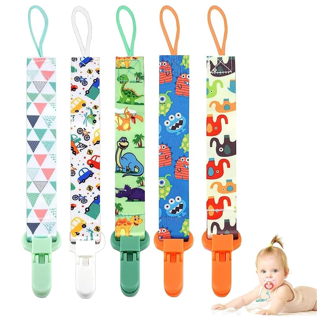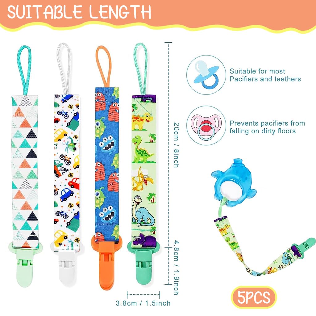 - TRENDY & FUNCTIONAL GIFT: Each pack comes with 5 charming, cartoon-themed pacifier straps, perfect for babies over three months. An excellent gift idea for baby showers or birthdays, they blend functionality with a fun aesthetic, making them a delightful addition to any baby's essentials.