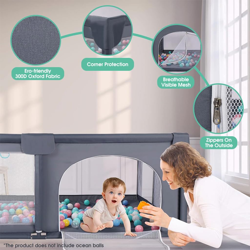 - SAFETY CORNER PROTECTORS: All corners of the ball pit are equipped with padded pads that act as corner protectors, minimizing the risk of accidents and enhancing baby's safety while playing. Parents can have peace of mind knowing that their little one is protected.