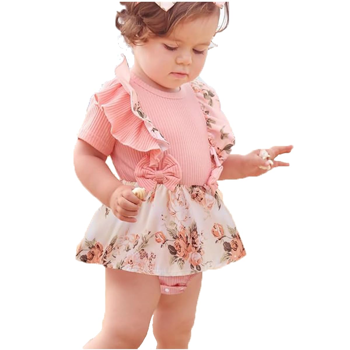 ZIBUYU® New Born Baby Girl Dress with Bow Headband is a floral print baby girl outfit designed to combine comfort and charm for infants. Crafted from soft cotton fabric, this breathable summer romper dress features delicate short sleeves, a ruffled hem, and two decorative bows that enhance its elegant, dress-style look. The practical snap button closure at the crotch allows for easy and quick diaper changes, ensuring convenience for parents. Including both a romper and a matching bow headband, this adorable garment set is perfect for everyday wear or as a thoughtful baby shower gift. ZIBUYU® provides trusted quality clothing that balances style, comfort, and practicality for newborn girls.