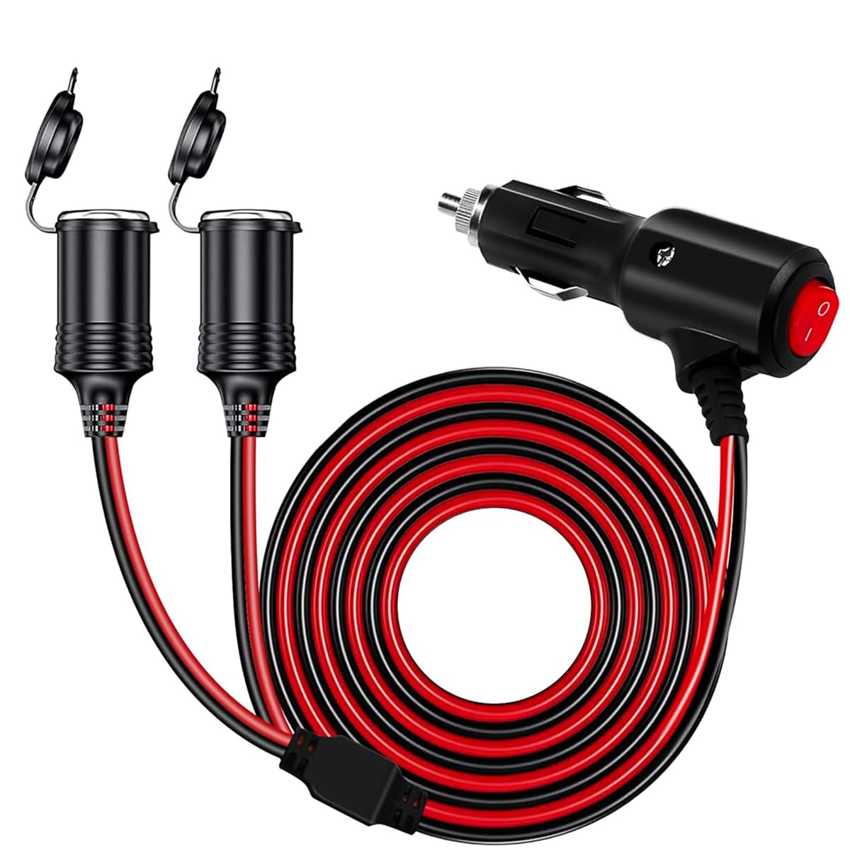STHIRA Car Cigarette Lighter Splitter for 12V/24V Vehicles with 9.8 ft Cable & Power Switch | Dual Port Adapter for Phone and GPS Charging