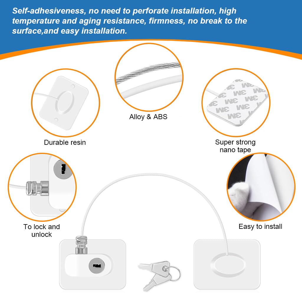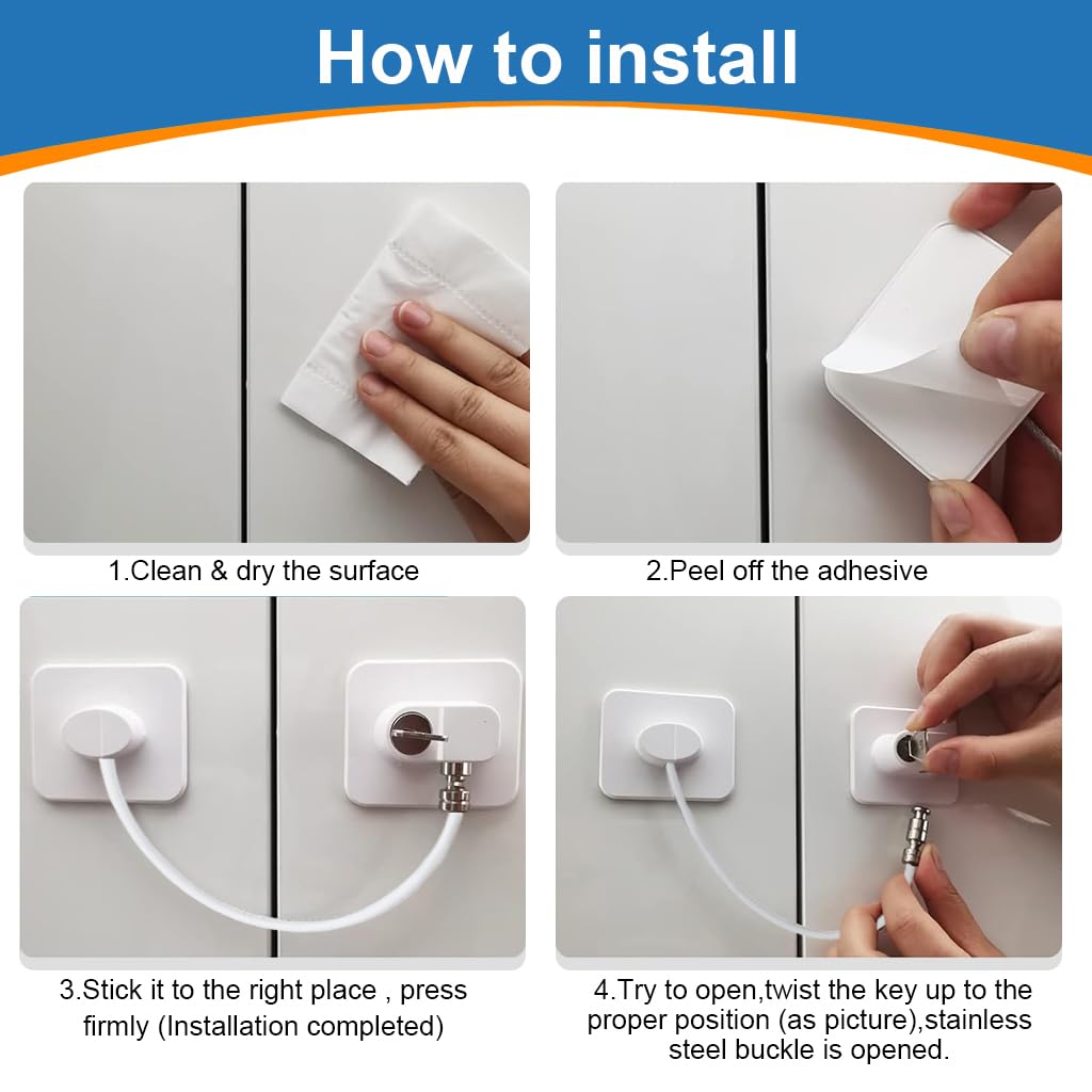 - CONVENIENT SELF ADHESIVE INSTALLATION: Utilizes self adhesive backing to ensure a strong and lasting hold on a variety of surfaces including wood, metal, and glass. The advanced adhesive technology brings an added layer of security, ensuring the lock remains firmly in place and hard for children to remove.