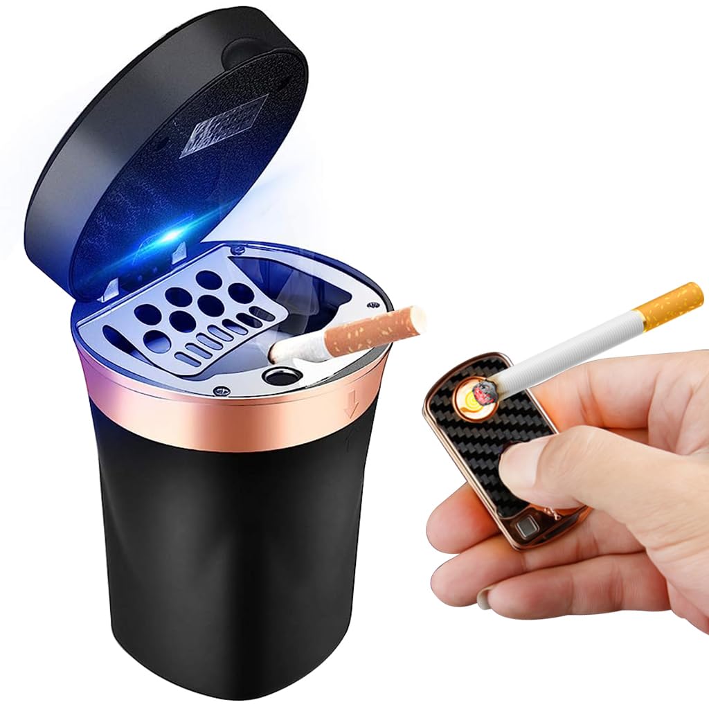 STHIRA Car Ashtray with Electronic Cigarette Lighter is a sleek, solar-powered and USB-rechargeable car ashtray designed for convenient use in vehicles, homes, or offices. Made with a premium ceramic liner, it offers durability, high heat resistance, and easy cleaning. The built-in electronic lighter provides a flameless and efficient way to light cigarettes, while the anti-smell lid helps contain odors and prevent ash spills. An integrated mini LED light ensures visibility in low-light conditions and adds a refined look to the interior. Ideal for most standard car cup holders, this STHIRA ashtray delivers practicality, comfort, and a cleaner environment for every smoker on the road.