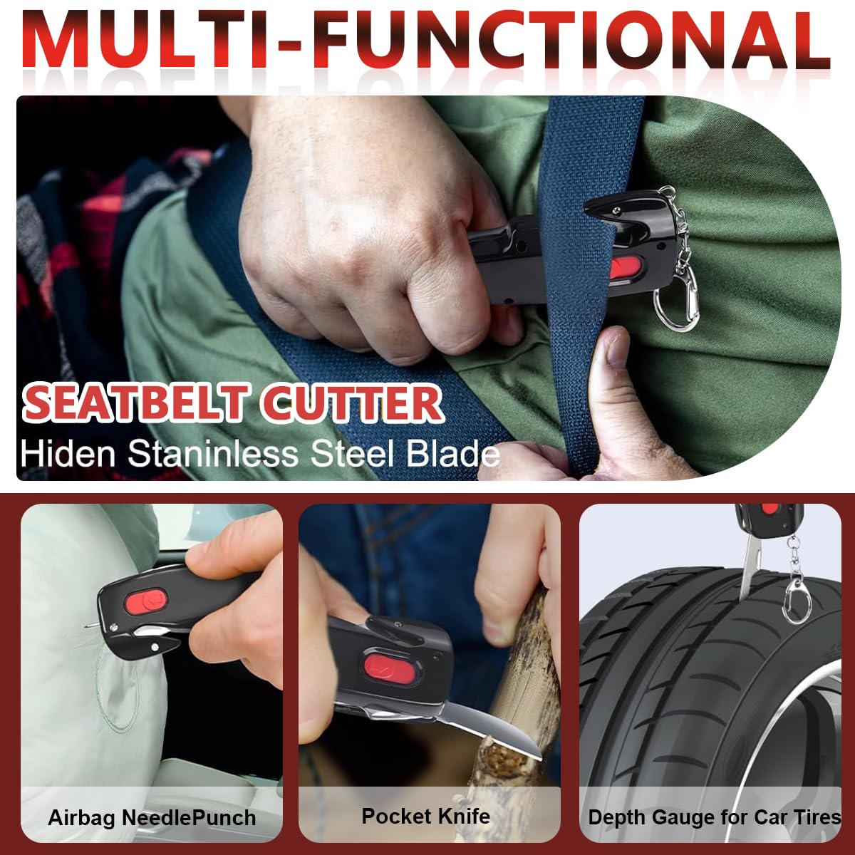 - ESSENTIAL LIFE-SAVING GADGET: With its multiple features, this multi tool becomes a crucial tool for any car-related emergency. It enables you to break the car window effortlessly, cut the seatbelt quick, deflate airbag if necessary, and protect from static electricity. With such a tool in hand, you will be better prepared to handle various unexpect emergency situation.