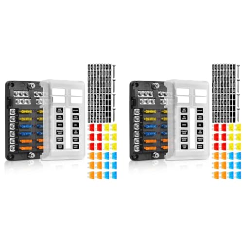 - DURABILITY & WATERPROOF DESIGN: The 12-Way circuits fuse holder features a robust, waterproof design, protecting it from dust, moisture, and accidental contact. Encased in a sturdy plastic cover, our car fuse set kit keeps out water and moisture, ensuring the longevity of your vehicles electrical system .