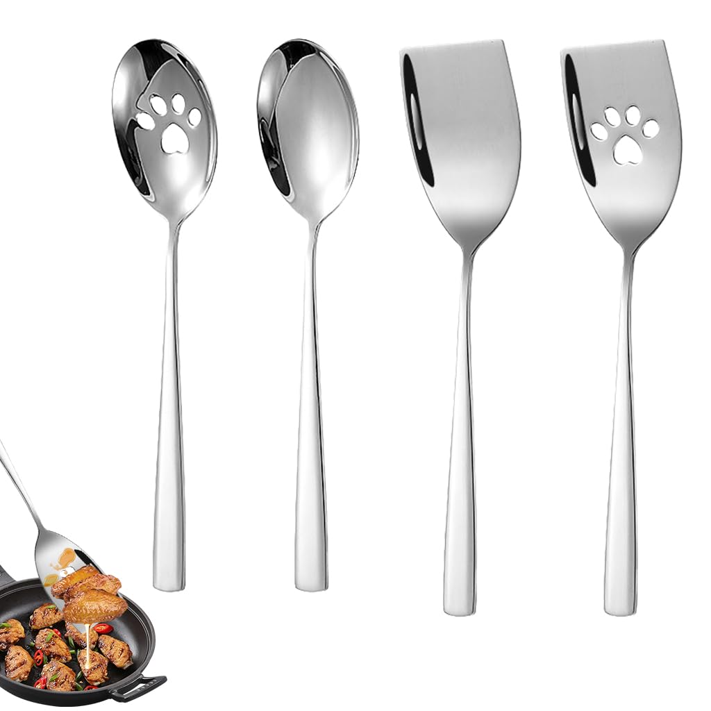 The Supvox® 4Pcs Stainless Steel Serving Utensil Set includes large buffet serving spoons, a slotted spoon, a spatula, and a slotted spatula designed for elegant presentation and everyday use. Made from premium stainless steel, these serving tools are durable, resistant to rust, and maintain their polished shine over time. With their versatile design, the utensils suit a range of dishes from salads to hot meals, offering balance and control through an ergonomic grip. The decorative hollowed detailing enhances table settings with a refined appearance. Ideal for parties, family meals, or formal dining, this Supvox set combines functionality, durability, and visual appeal to support effortless entertaining and lasting value.