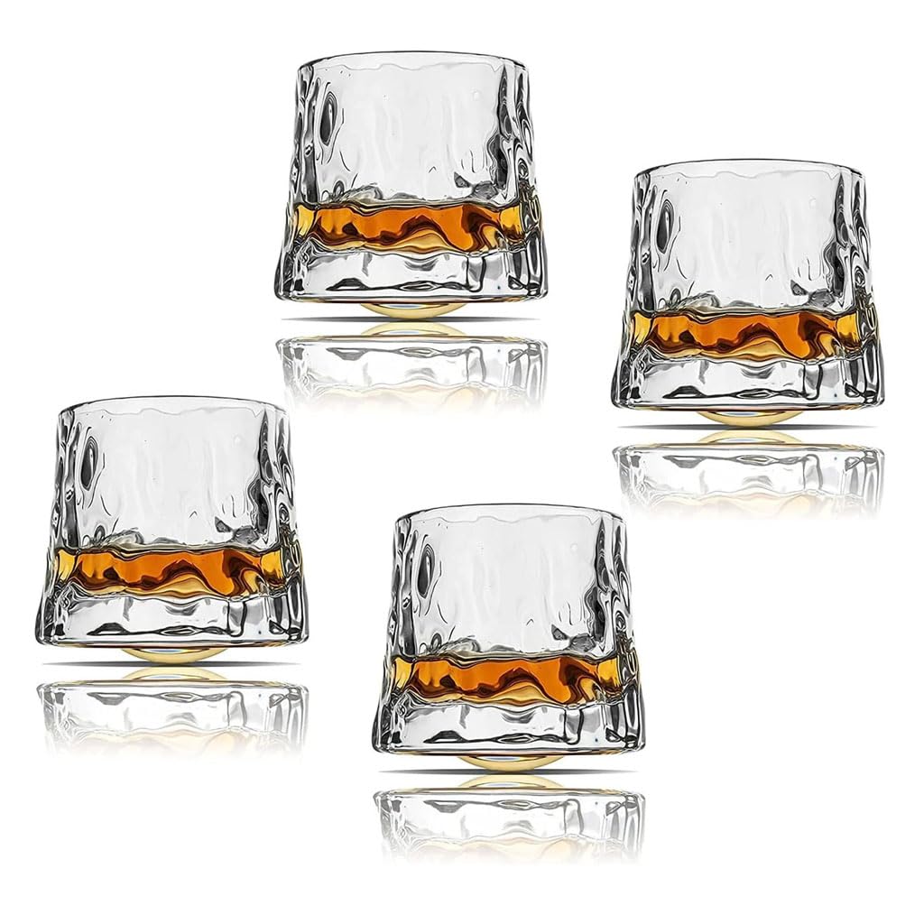 Supvox 4Pcs Whiskey Glass Cups Rocking Whiskey Glass Cups offer a refined combination of elegance and functionality for whiskey, wine, or cocktail enjoyment. Made from durable, high-quality glass with a sophisticated textured surface, these 150ml glasses feature an innovative rolling base design that enhances aeration and aroma while maintaining stability. The crystal-clear transparency highlights the natural color of your drink, and the balanced size accommodates ice or garnishes with ease. Designed for comfort, style, and versatility, these rocking whiskey glasses are well-suited for everyday use or special gatherings, reflecting Supvox’s commitment to quality craftsmanship and thoughtful drinkware design.