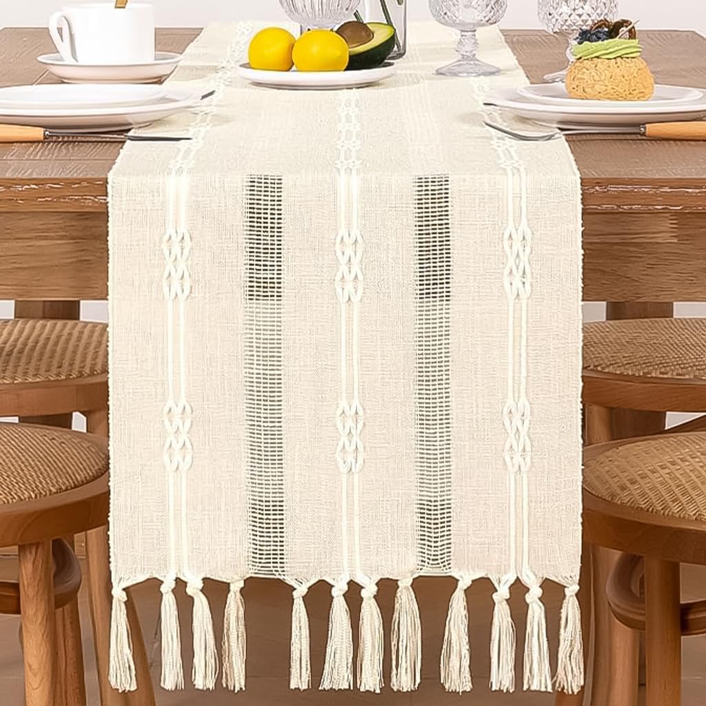 - HASTHIP Table Runner for Party and Wedding 30x180cm featuring Jacquard Patchwork Linen and Tassel Design HASTHIP Table Runner for Party and Wedding 30x180cm featuring Jacquard Patchwork Linen and Tassel Design