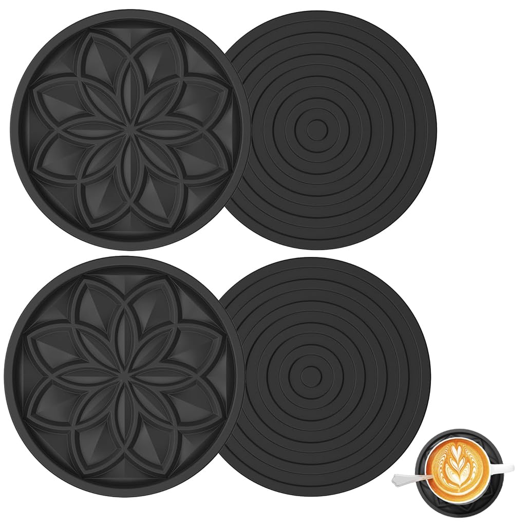 Supvox Coasters for Drinks 4 Pcs Silicone Coasters Set by Supvox provides a reliable surface for protecting coffee tables and other furniture from beverage stains or heat damage. Made of high-quality silicone, these black coasters are durable, flexible, and easy to clean after everyday use. Their simple round design ensures stable placement for cups, mugs, and glasses. The non-slip surface prevents spills or scratches while maintaining a sleek, modern look suitable for any home or office decor. Ideal for both hot and cold drinks, this practical coaster set reflects Supvox’s attention to quality and functionality, helping users keep their tabletops clean and well-maintained with minimal effort.