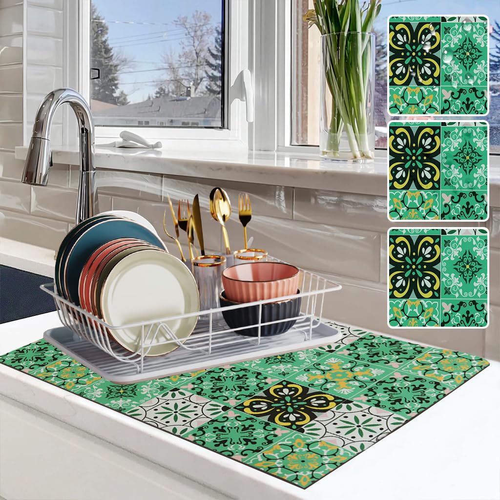 Supvox Dish Drying Mat for Kitchen Counter with Non Slip Rubber Base and Heat Resistance 40x50cm Green