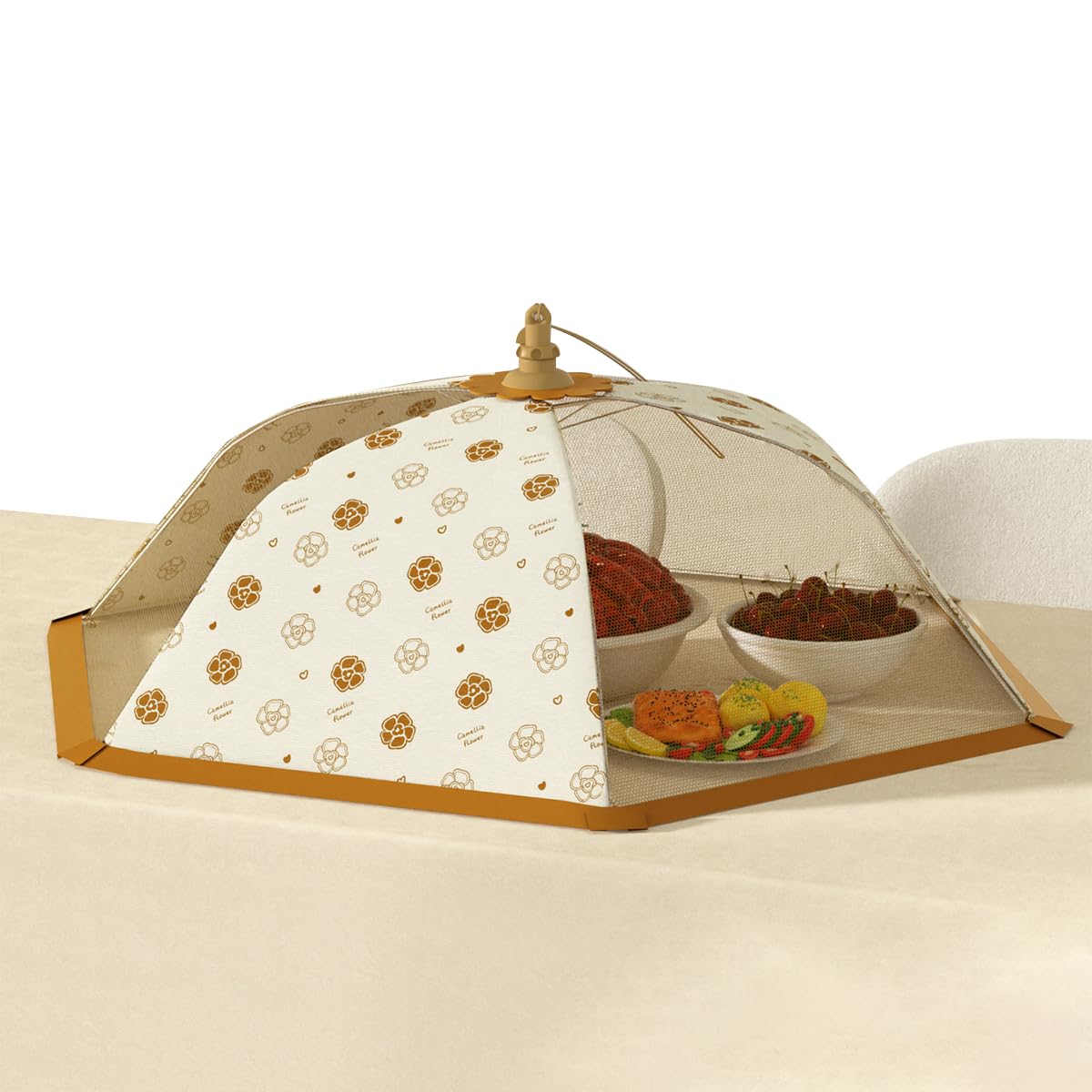 Supvox Food Cover 16.5 Inch Pop-up Mesh Food Cover is a practical and stylish solution for protecting meals both indoors and outdoors. Made with breathable see-through mesh, it allows air circulation while keeping insects and debris away from your dishes, maintaining freshness and hygiene. The convenient pop-up umbrella mechanism offers quick setup and effortless folding for storage. Its robust rib and shaft construction ensure long-lasting stability and durability during regular use. Measuring 16.5 inches in diameter, it offers generous coverage yet remains lightweight and portable for easy carrying. Ideal for home dining, camping, picnics, or kitchen use, Supvox enhances food safety and comfort with dependable everyday design.