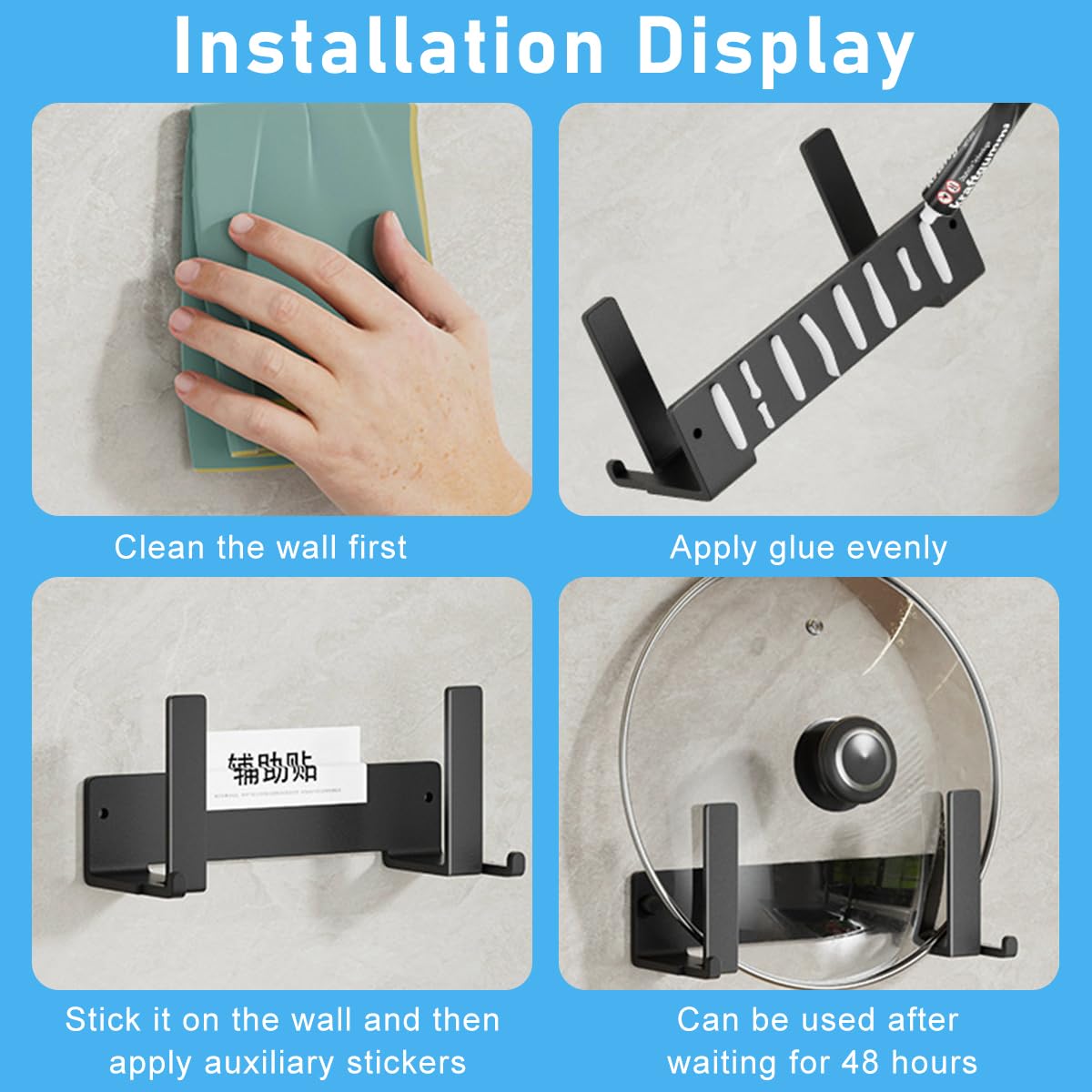 - EASY INSTALLATION: Featuring a self-adhesive installation design, setting up the pot lid holder is a breeze. No need for complicated tools or drilling holes; simply peel and stick it in your desired spot. Enjoy a clutter-free kitchen immediately without any hassle.