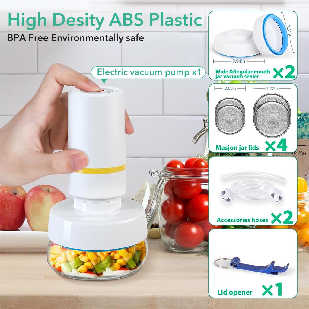 - Supvox Mason Jar Vacuum Sealer Kit Electric Jar Sealer and Hose Compatible with Food Saver Vacuum Sealer Machine for Wide & Regular Mouth Mason Jar, with Electric Vacuum Pump and Lid Opener Supvox Mason Jar Vacuum Sealer Kit Electric Jar Sealer and Hose Compatible with Food Saver Vacuum Sealer Machine for Wide & Regular Mouth Mason Jar, with Electric Vacuum Pump and Lid Opener