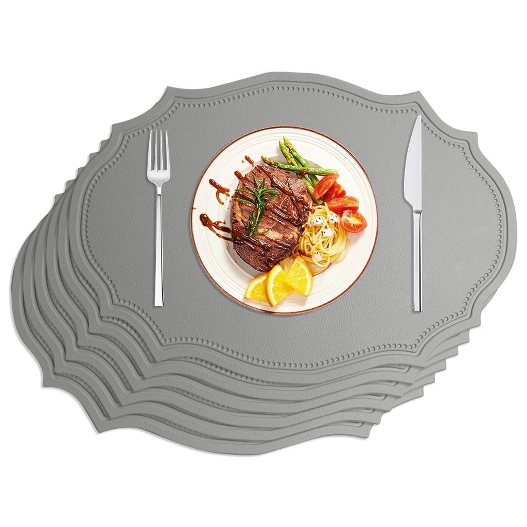 - Supvox Faux Leather Placemats Set of 6 for Dining and Kitchen with Anti Slip 16.9×11.8 in Grey Supvox Faux Leather Placemats Set of 6 for Dining and Kitchen with Anti Slip 16.9×11.8 in Grey