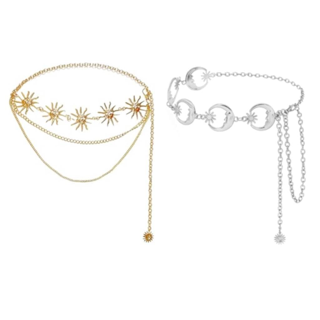 - Venzina Waist Chain Combo for Women featuring Moon Sun Star Design and Metal Layers | Party and Ethnic Wear Venzina Waist Chain Combo for Women featuring Moon Sun Star Design and Metal Layers | Party and Ethnic Wear