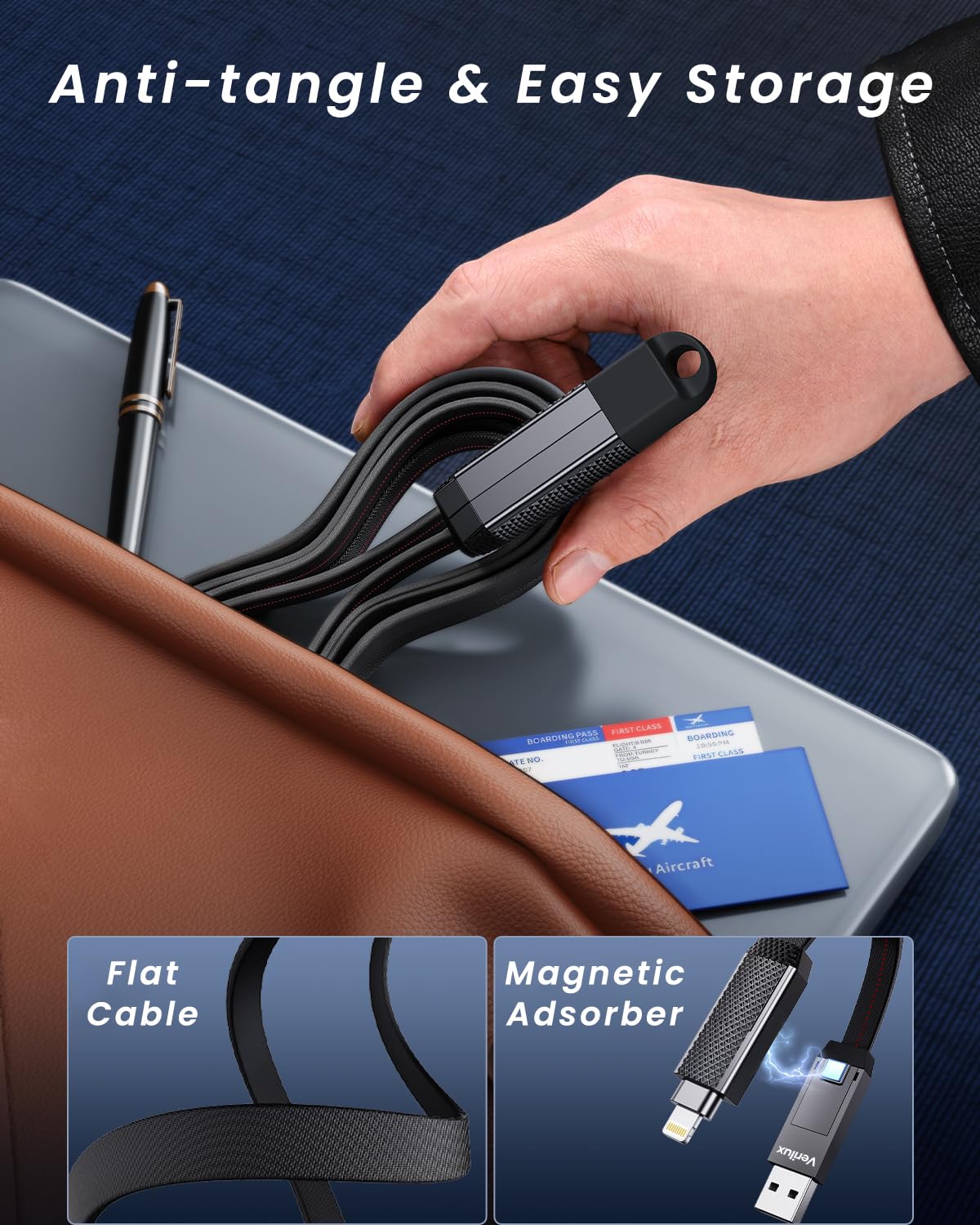 Verilux 4-in-1 USB Charging Cable 3.3Ft Multi-Port Cable Support PD Max 60W Fast Charging & Data Sync, Light-ning to Type C Cable, USB to Type C Cable, Type C to Type C, USB A to Light-ing Cable