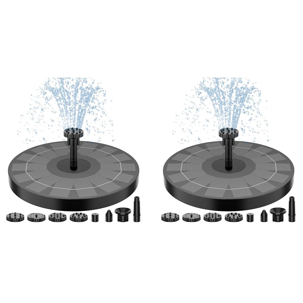 Verilux Solar Fountain Pump for Garden and Pond with 6 Nozzles Max 3.3ft Water Column 2PCS