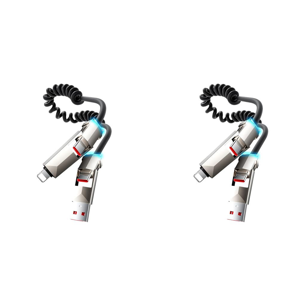 Verilux 2Pcs 4 in 1 C Type Charger Cable 6.6FT/2M offers a versatile and efficient charging solution for multiple devices, combining durability, flexibility, and high-speed performance in one design. This PD 240W Type C Cable supports powerful charging across USB-C, Lightning, and USB-A interfaces while enabling 480Mbps data transfer for fast and stable connections. Its unique spring coiled structure prevents tangling and saves space, and the built-in RGB indicator light provides clear charging status with visual appeal. Designed for users who value convenience, reliability, and compatibility, Verilux delivers practical connectivity for travel, workplace, or daily use with dependable quality.