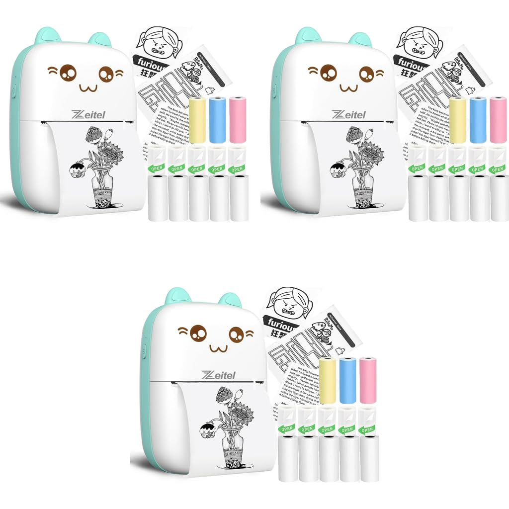 - ZEITEL Mini Bluetooth Thermal Printer for Label and Sticker Printing with 5 Rolls Paper | Inkfree Portable Design for Android and iOS ZEITEL Mini Bluetooth Thermal Printer for Label and Sticker Printing with 5 Rolls Paper | Inkfree Portable Design for Android and iOS