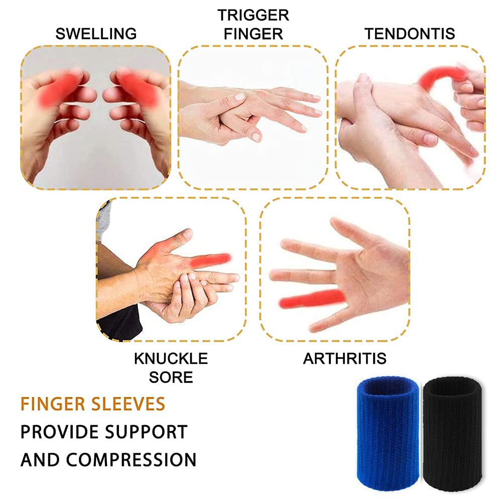 - 10 PCS FINGER SUPPORT SET: This finger support for pain relief including 10 pcs solid black color finger sleeves, suitable for both man and women.