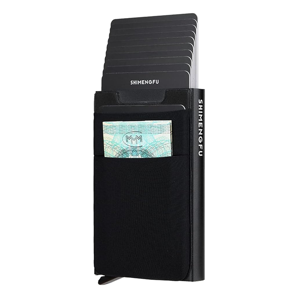 - ZIBUYU® SHIMENGFU Slim RFID Blocking Card Holder Wallet For Men Women, 10-12 Card Capacity, Anti-Magnetic Pop Up Aluminum Case, Quick Access Credit Card Organizer, Black, Minimalist Pocket Size ZIBUYU® SHIMENGFU Slim RFID Blocking Card Holder Wallet For Men Women, 10-12 Card Capacity, Anti-Magnetic Pop Up Aluminum Case, Quick Access Credit Card Organizer, Black, Minimalist Pocket Size