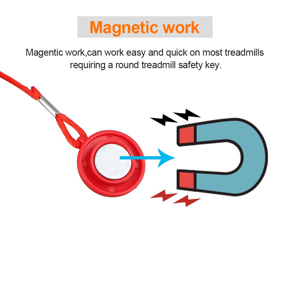 - Premium Material]: Safety keys are extremely important to maintain the efficient operation of any treadmill. The round treadmill safety key are made of high quality ABS plastic, braided rope, Powerful magnets and springs, This enhances their strength and safety.