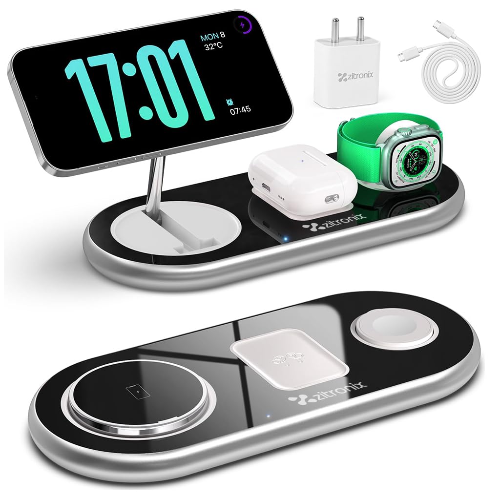 - zitronix 3 in 1 Wireless Charger for iPhone iWatch and AirPods with 15W Power | Folding Magnetic MagSafe Stand for Travel zitronix 3 in 1 Wireless Charger for iPhone iWatch and AirPods with 15W Power | Folding Magnetic MagSafe Stand for Travel